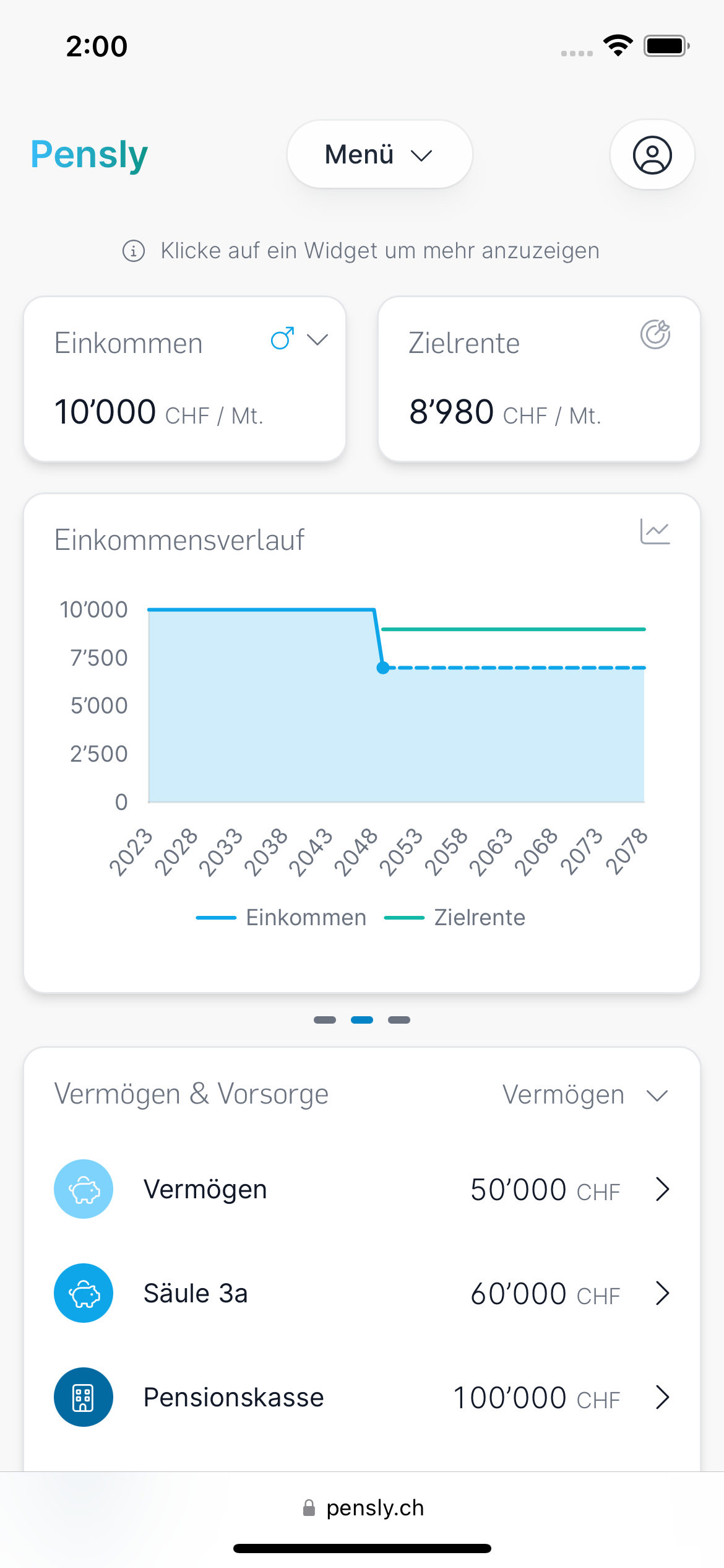 Egal, ob du 25 oder 65 Jahre alt bist, unser Vorsorgecockpit hilft dir, deine Finanzen zu verstehen und zu optimieren. Einfach, transparent und unabhängig.